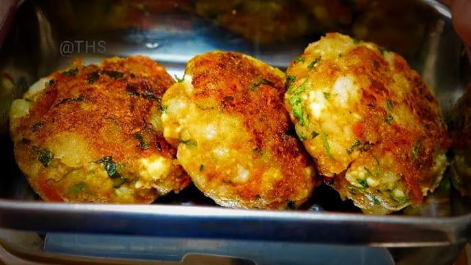 Step 6: आलू पनीर के टिक्की को ब्रेडक्रंब्स में को कोट करने के बाद, आपको तवा में आलू पनीर के टिक्की को घी या फिर तेल में बाहर से क्रिस्पी होने तक तल लेना होगा।