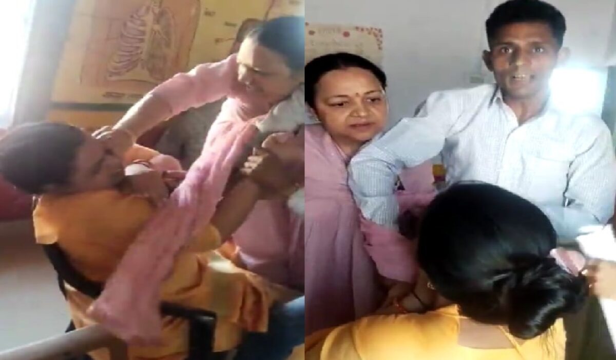 इन वायरल वीडियो से साफ पता चल रहा है कि प्रिंसिपल टीचर का गाल पकड़ कर नोंच रही है तो वहीं इस खींचतान में टीचर भी प्रिंसिपल का सूट फाड़ देती है। इस वीडियो को बना रही एक महिला टीचर और प्रिंसिपल का ड्राइवर दोनों को रोकने में लगे हुए हैं।