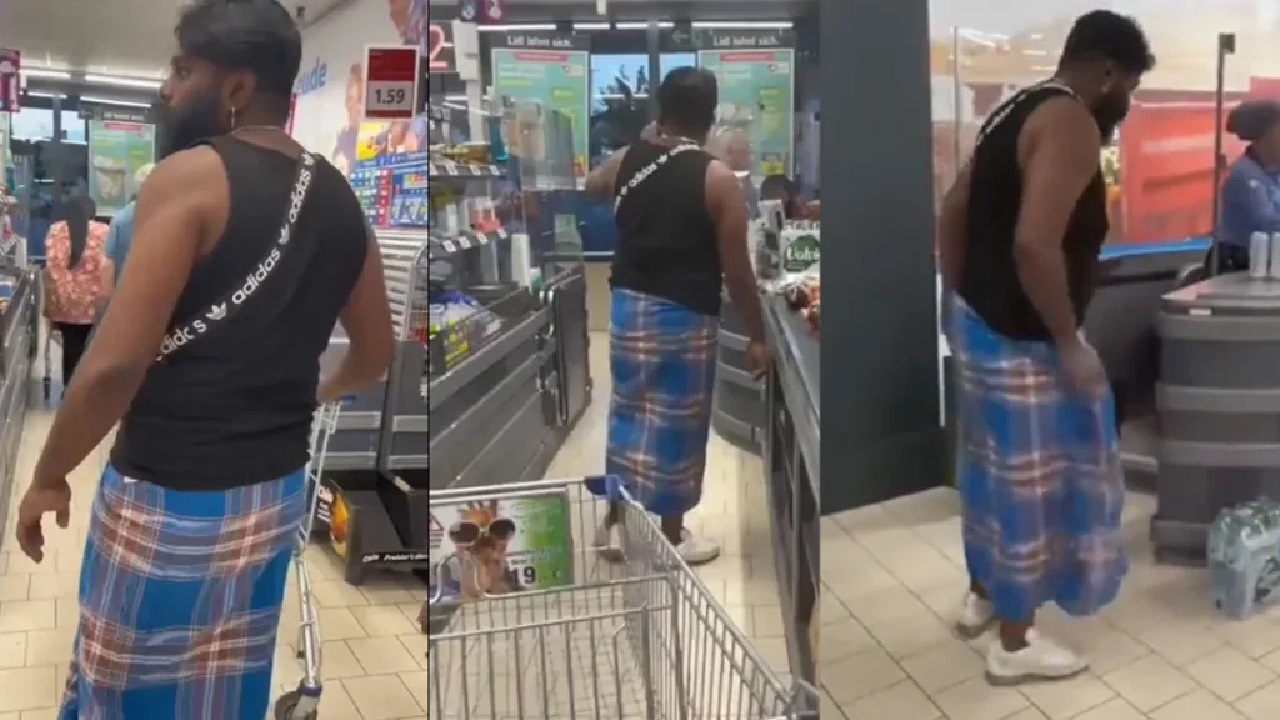Man Wearing Lungi In Mall: यूपी बिहार में ज्यादातर पुरुष रात में लुंगी ही पहनते है. सिर्फ यूपी बिहार ही नहीं बल्कि लोग साउथ के साइड भी लुंगी पहनते है. ये सबसे आसान कपड़ा में से एक है. लुंगी एक ऐसा कपड़ा है जिसे लोग अलग अलग तरह से पहनते है. सिर्फ पहनते ही नहीं है आप इसे कई तरिके से यूज़ भी कर सकते है. साउथ के साइड तो लोग इसी को पहनकर शादी में जाते है. लेकिन क्या आपने कभी किसी को विदेश में लुंगी पहनते हुए देखा है? आप में से लगभग सभी का ना होगा पर ऐसा हुआ है.
